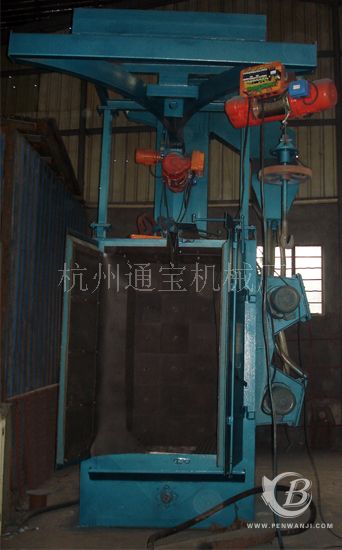 來自歐洲馬其頓國家的客戶在我司定做的雙鉤吊掛式拋丸機現(xiàn)已制作完成,驗收調(diào)式完畢;設(shè)備已發(fā)給客戶使用。雙鉤吊掛式拋丸機的 工作原理:需拋丸處理的工件直接懸掛在吊鉤或掛架上,人工帶至拋丸室前部的牽引系統(tǒng),吊鉤自動進入拋丸室;吊鉤進入拋丸室后,拋丸室門將氣動關(guān)閉,電氣聯(lián) 鎖,以避免工件在拋丸室內(nèi)進行拋丸處理時他人誤開拋丸室門;吊鉤進入拋丸室在設(shè)定的區(qū)間位置作來回往復(fù)運動和自轉(zhuǎn),使工件受到充分拋丸,減少拋丸死角;二 個吊鉤/一個吊鉤在拋丸室內(nèi)拋丸,另一個吊鉤可裝卸工件;拋丸處理的時間可任意調(diào)整。拋丸器停止運轉(zhuǎn)后拋丸清理室門打開,以帶進和帶出工件;拋丸處理中產(chǎn) 生的粉塵由二級除塵器過濾排放。